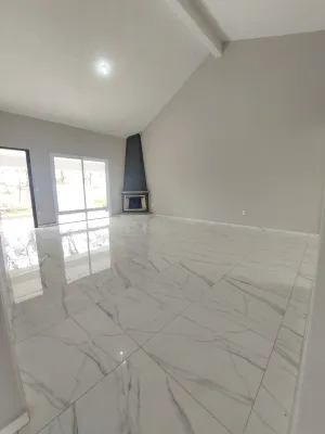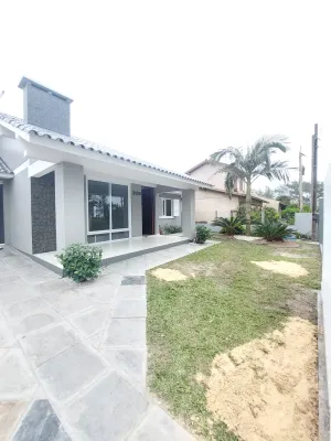 Casa à 50 metros do mar no Balneário Nova Tramandaí, excelente padrão construtivo, forro todo em laje de concreto, aberturas externas em madeira de Itaúba, piso porcelanato, composta de 03 dormitórios, sendo um suíte, banheiro social, sala de estar e jantar em conceito aberto com lareira, varanda, cozinha, área de serviço, churrasqueira, garagem fechada, pátio na frente e nos fundos.