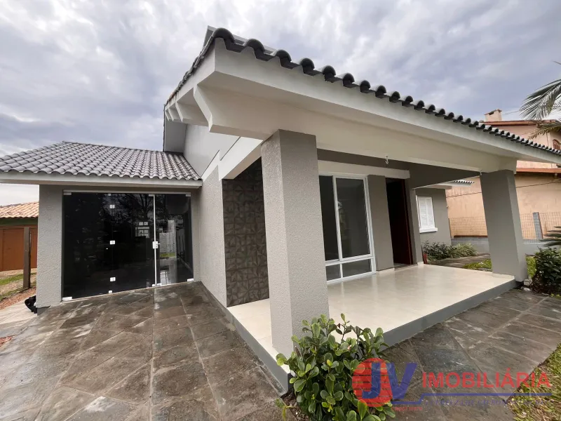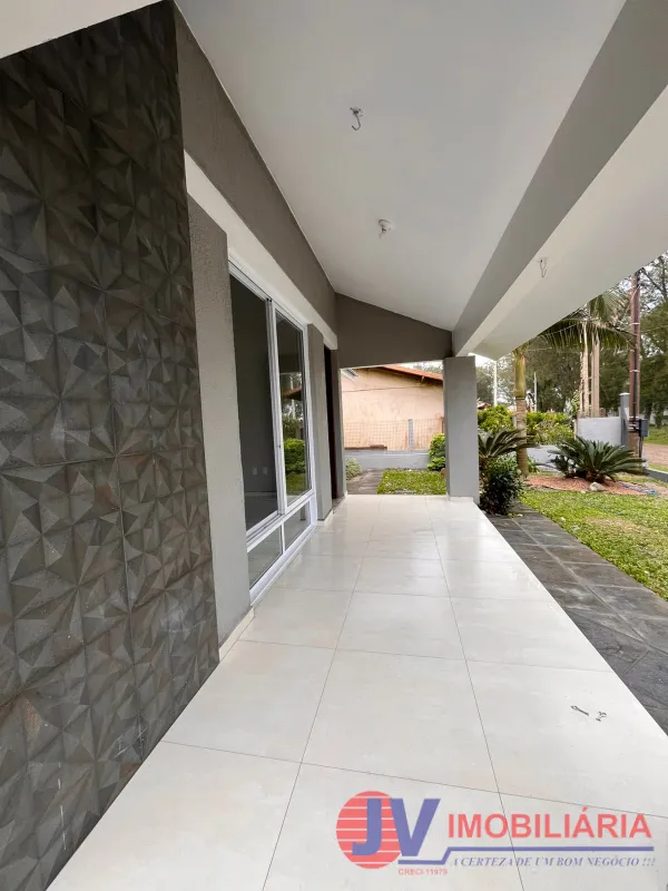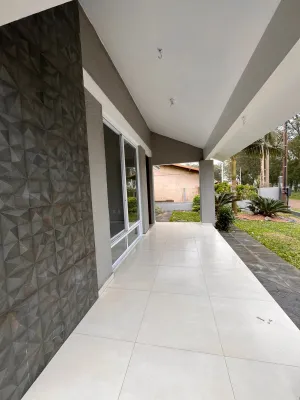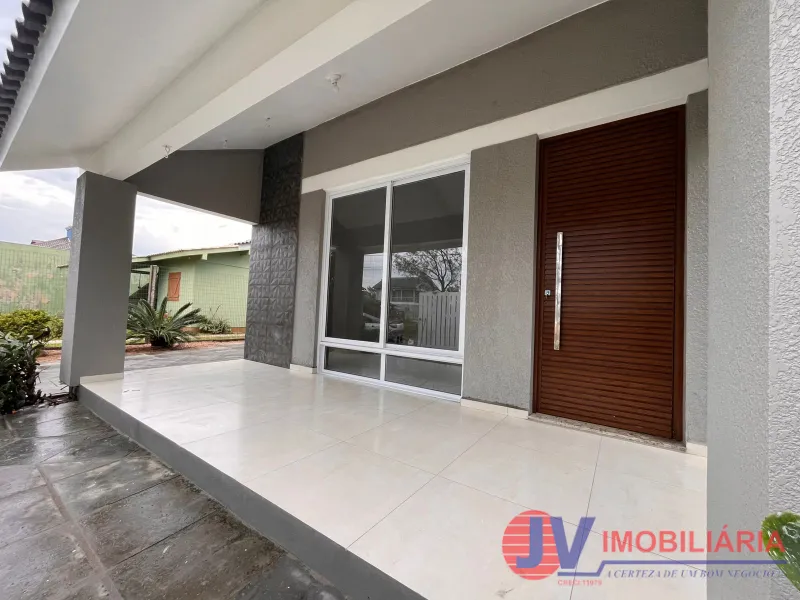 Residência com excelente padrão construtivo, com forro em laje de concreto e aberturas externas em madeira de Itaúba. O interior conta com piso em porcelanato e é composta por 3 dormitórios (sendo uma suíte), banheiro social e amplo ambiente integrado de sala de estar e jantar com lareira.