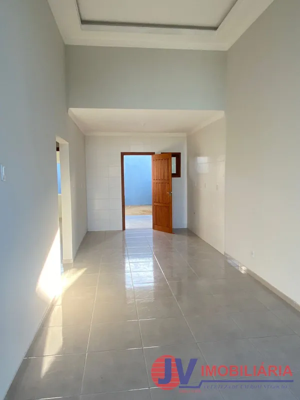 Oferece 2 dormitórios (1 suíte), banheiro social, cozinha e sala de estar com sanca em gesso e pé-direito duplo de 4,20 m. Possui jardim de inverno, área de serviço, churrasqueira, pátio murado e vaga para 1 carro.