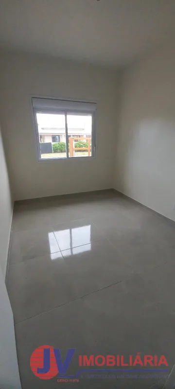 Casa nova, com 02 (dois) dormitórios, sala de estar/jantar, cozinha, área de serviço, 01 (um) banheiro social, aberturas em alumínio, laje de concreto, estacionamento para carro.