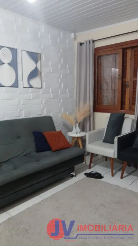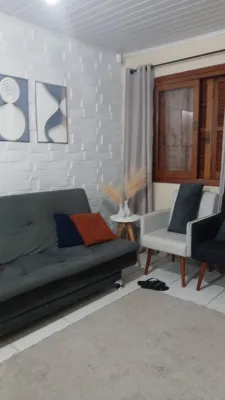 Casa geminada mobiliada, com 02 (dois) dormitórios, sala/cozinha, 01 (um) banheiro social, forro de pvc, área de serviço com espaço gourmet, estacionamento para carro e pátio fechado.