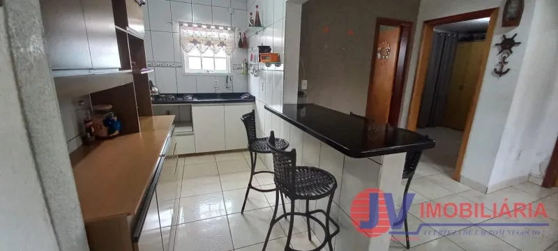 Casa semi-mobiliada, com 02 (dois) dormitórios, sala/cozinha, lavanderia, forro PVC, quiosque com churrasqueira e banheiro auxiliar, piscina, pátio fechado e poço artesiano, estacionamento para 01 (um) carro.